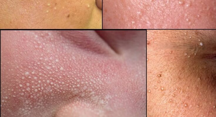 Esos pequeños bultitos blancos en la piel que aparecen en la cara, especialmente alrededor de los ojos, mejillas o nariz, son más comunes de lo que crees… y no siempre significan algo grave.