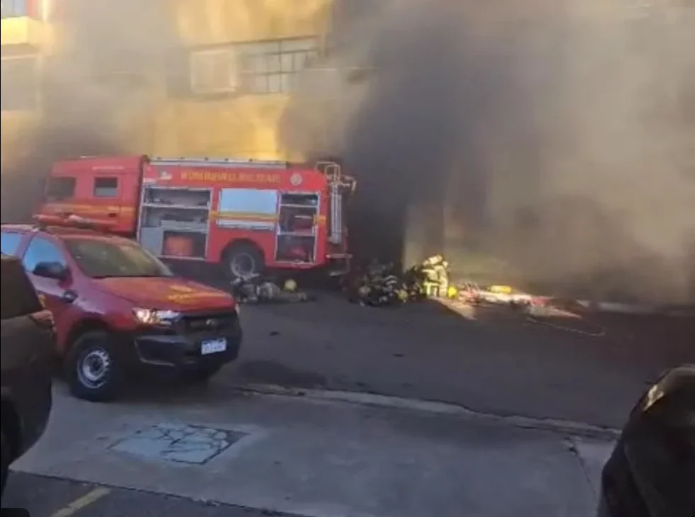 This morning, a fire at Supermercado 300 in Santana do Livramento – right on the Brazil-Uruguay border – suddenly exploded while firefighters were entering the structure.
