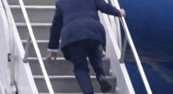 At times, history does not turn on grand speeches, decisive votes, or sweeping reforms, but on moments so small they would once have gone unnoticed. In today’s media-saturated environment, the line between the trivial and the consequential has become increasingly blurred. Ordinary human actions—especially when performed by public figures—are no longer allowed to exist in isolation. They are captured, replayed, analyzed, and transformed into symbols that carry far more weight than the moments themselves ever warranted. One such example unfolded when Donald Trump briefly lost his footing while climbing the stairs of Air Force One, a fleeting incident that quickly grew into a viral phenomenon.