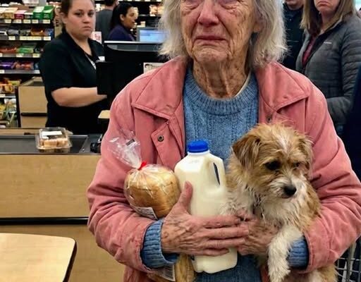 She was small and elderly, wrapped in a coat so worn the sleeves were nearly threadbare. Her back was bent in a way that told you life had pressed down on her for a long time. She placed two items on the conveyor belt.