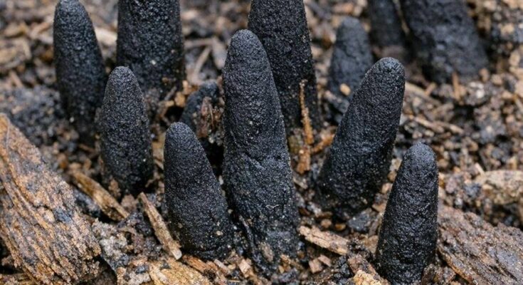 The texture of these growths is hard and woody when mature, adding to their creepy allure. Their transformation from a soft, whitish or pale structure to a rigid, blackened form contributes to their macabre reputation. The stark contrast between these fungi and the surrounding mulch or soil can make them stand out even more, drawing attention and sparking curiosity.2. Meet Dead Man’s Fingers: The Fungus Lurking in Your Mulch