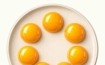 At first glance, the image looks harmless. A clean plate sits on a neutral surface. Seven glossy egg yolks are arranged in a near perfect ring. Above them, a bold …